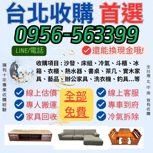 大掃除!找台北首選二手家具收高價收購免費搬運0956563399