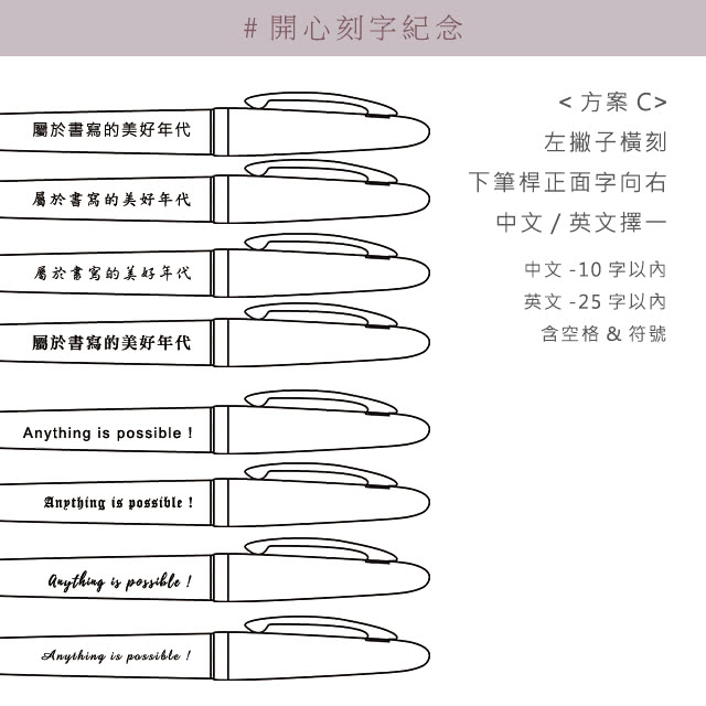 C.左撇子橫刻方案|下筆桿正面字向右|英文或中文擇1