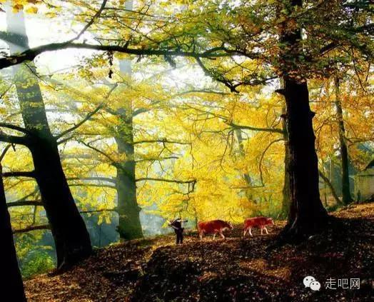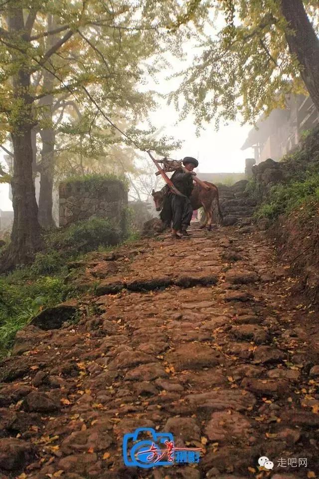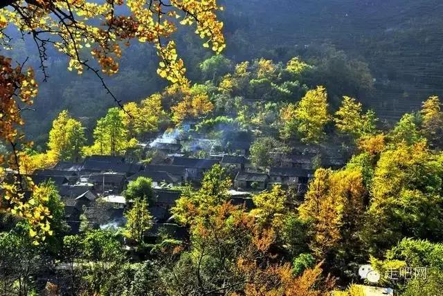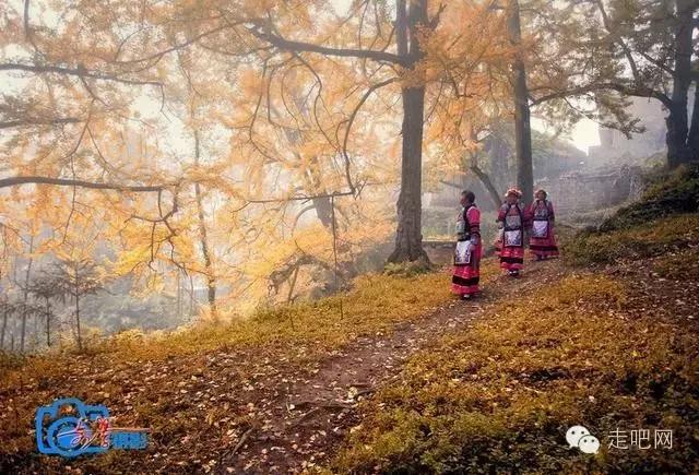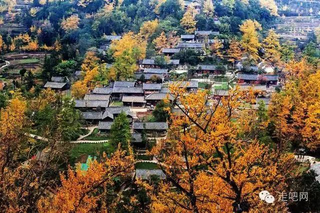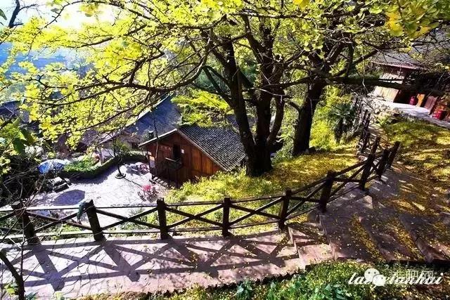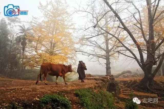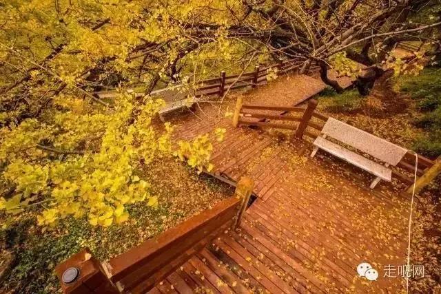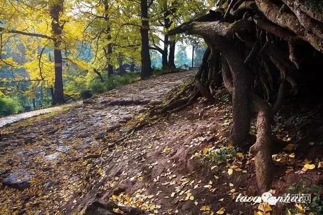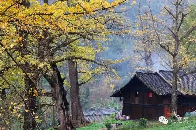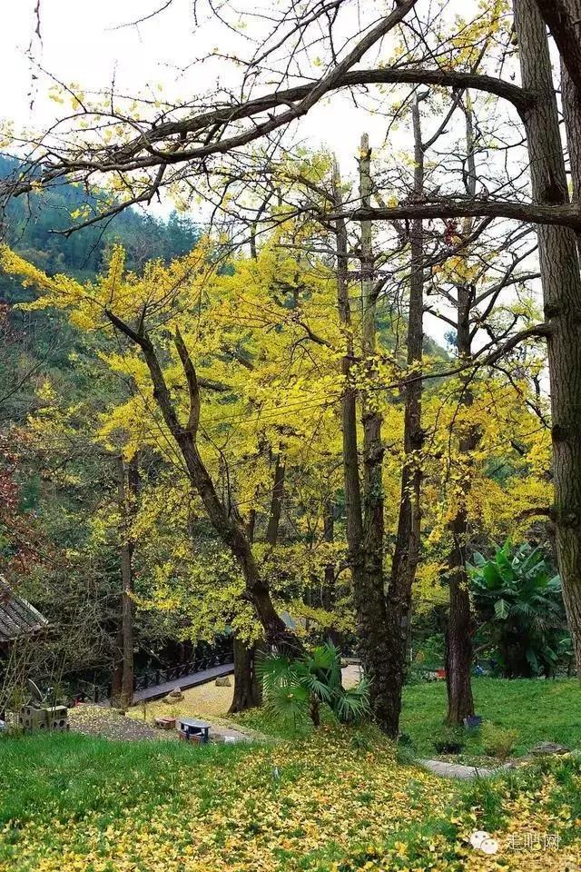 金色的秋葉給它鍍了一層夢幻的色彩,進入深秋後夏日里層層疊疊的綠葉全部變成了金黃色,落葉鋪滿了石板小徑、黑瓦的房屋、收穫後的稻田;