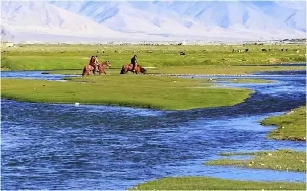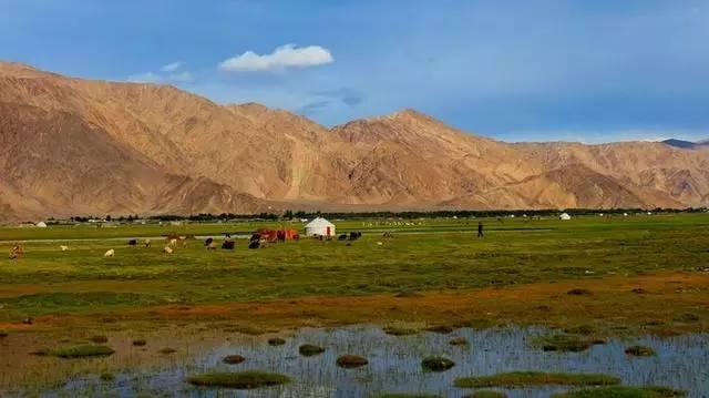 這里水草豐美,牛羊遍地,氈房點點,和遠處的雪山、藍天相互交映,宛如一處世外桃源。