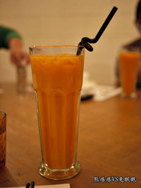 吃泰國料理不可錯過的泰式奶茶,份量蠻大杯的,雖然還不錯喝,但沒有台中大墩某一條路上的泰式餐廳好喝,搭配後面的甜點要額外加上50元才有。