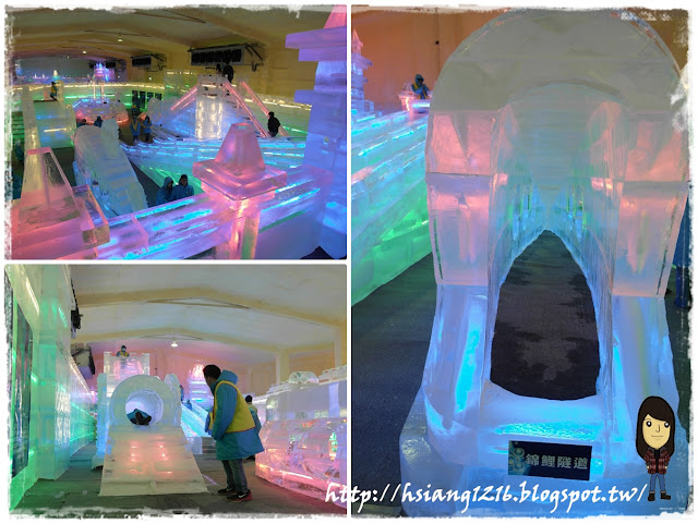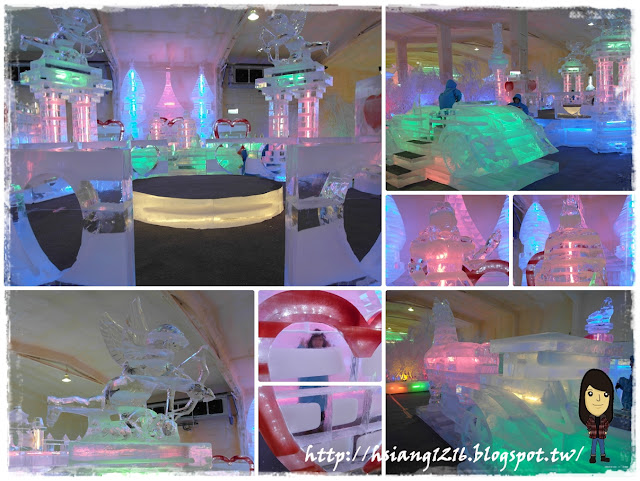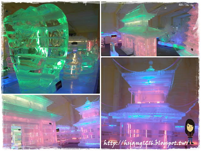 當然,此嘉年華的規模無法跟真正的哈爾濱冰雪節來做比較,在天然環境條件的受限下,也必須靠人工保持低溫狀態,所以就像個大冰庫似的,保暖措施真的不能少呀!現場也有雪衣租借,一件五十元!由於這是第一次嘗試長時間待在冰庫裡,所以小湘還是默默地借了雪衣!呵呵!