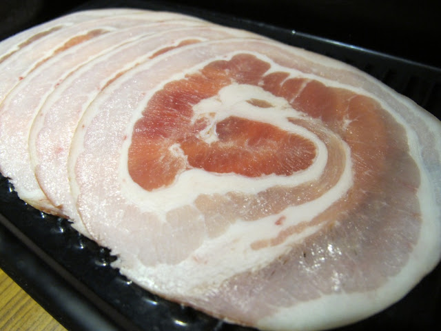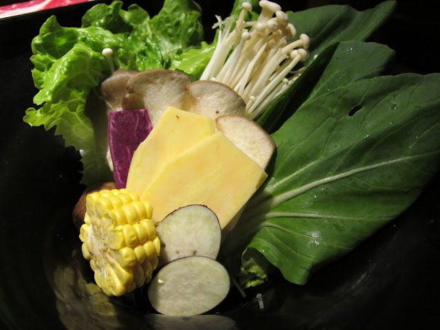 一開始先來了三盤肉片+一盤蔬菜,副食的部分則可以選擇要吃烏龍麵還是米飯。