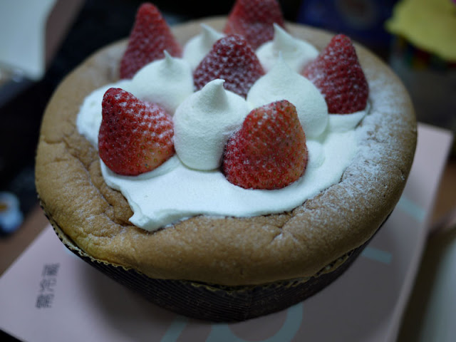 熊是在二月初吃到這個的蛋糕的,二月剛好也算是草莓盛產季節,但他們選用的草莓,不是很甜的那種,現場看起來不會很紅,味道上偏微酸。有時候我覺得這蛋糕的情景,若是能搭配小雪人,就很適合在聖誕節拿來賣,尤其是灑了糖粉後,更像一片飄雪的大地,可愛極了。