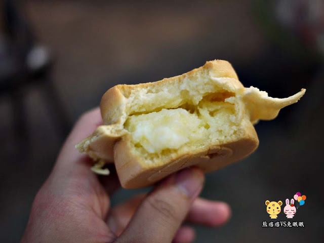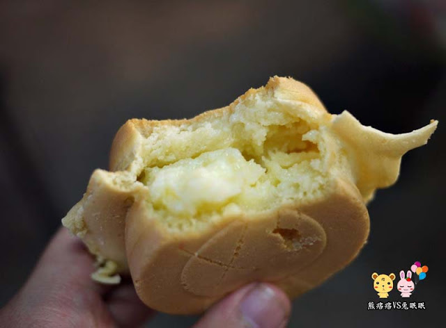 奶油的內餡很多,雞婆鹹水雞的老闆娘說這個還不錯吃,我想如果這是熱熱時應該會有爆漿的感覺吧?建議有要去買的人,可以請老闆現場做,或是等他剛出爐的時候在買,那時候的應該會比較好,不然放在保溫箱內的,也不知道是放多久,餅皮的水分都會吸收掉,變得過乾,實在蠻可惜的。