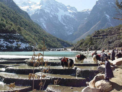 會永遠記得雲南麗江的玉龍雪山,碧綠的白水河畔牦牛在那兒飲水的美麗畫面.....