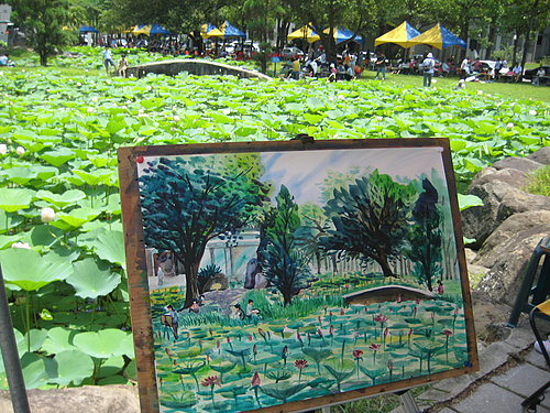 今天音樂饗宴邀請雲林國樂團現場演奏,讓假日參加畫荷寫生的民眾,在優雅國樂聲中享受賞荷、畫荷雅趣,頗有賞心悅目的詩情畫意。970524