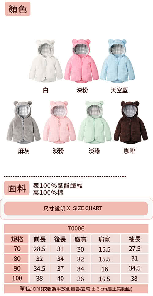 雙11特惠活動,搶到賺到:【Baby童衣】baby外套 小熊造型絨毛外套 嬰兒外套 男寶寶 女寶寶外套 70006(共7色)