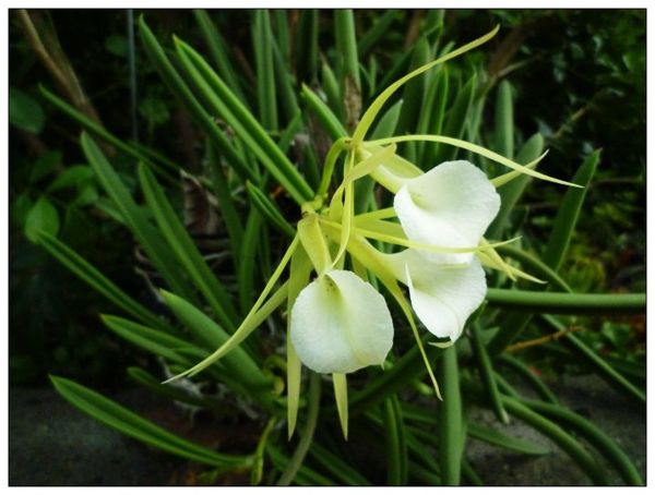 花瓣花萼同形同大小,淺綠色,唇瓣為白色心形。......(轉貼自網路)