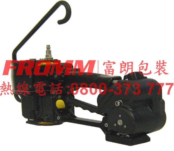 【FROMM 富朗包裝】 推出全球第一支針對小曲面包裝的 塑鋼帶 免扣式 氣動打包機-P380,打包面積只要
