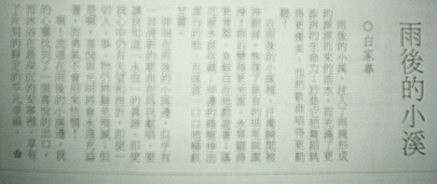 啊!流連在雨後的小溪邊,我的心靈找到了一個喜悅的出口,而沐浴在最深沉的安寧裡,享有了片刻的靜定的平凡幸福。