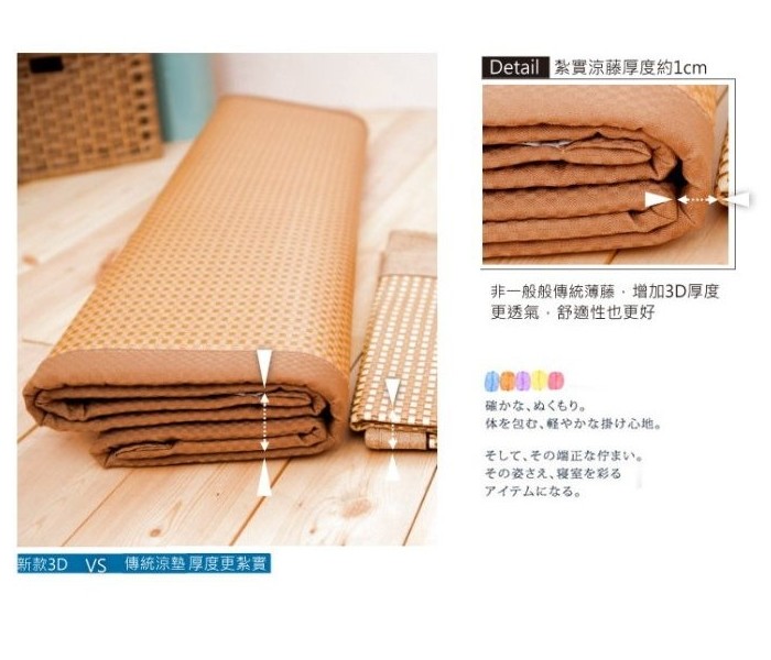 LUST生活 3.5尺【3D透氣網-原創柔藤涼蓆-】極厚1公分的涼爽竹蓆(日本原料)台灣生產