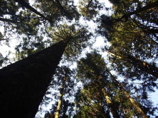 抬頭看看, 高聳直入天際ˋ. 周圍全是編號完整的神木區, 如果一定要挑很多人, 或是假日, 到阿里山. 我覺得一定要早起, 很早起床. 比別人早起十分鐘, 就可以很從容的上路去, 挑自己想要的,諾大的山裡,每個人想要的一定相同,看得也不同,需要的也不同.