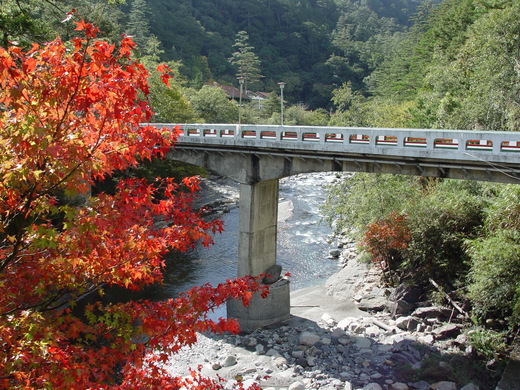 迎賓橋下的楓紅 , 似乎就是就像活的 招牌一樣.