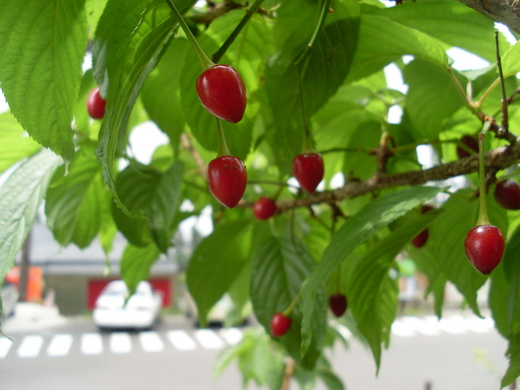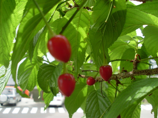 走到 火車已經停開的火車站, 瀟洒的發現, 木柵欄旁的吉野櫻花果,