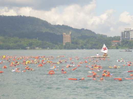 泳渡日月潭的人 , 當然相當的多 , 今年又破記錄了270002多人