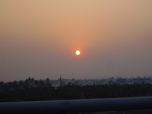 夕陽的光線.已經到可以直視它的美麗火紅了.