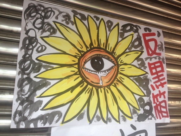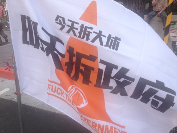 幾個路口也有之前社運的標誌旗迎風飛揚著。