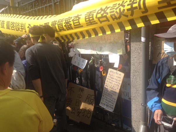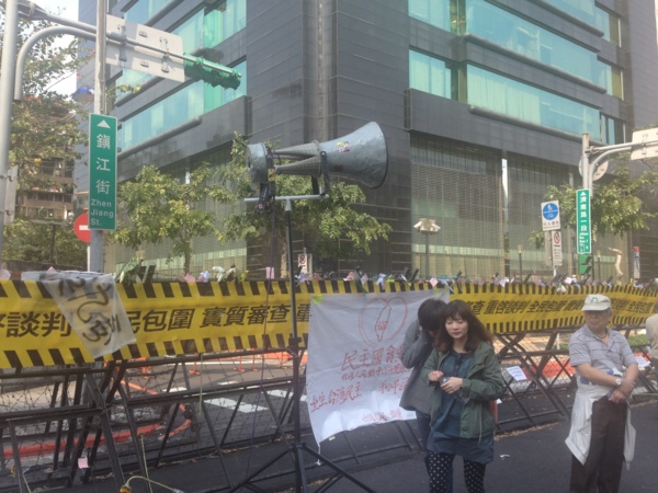 鎮江街上沿路長長的拒馬,上頭是長長的黃布條及各路人馬自製的示威文宣。
