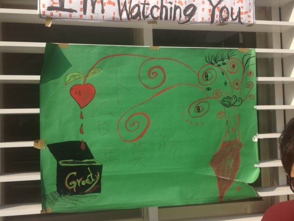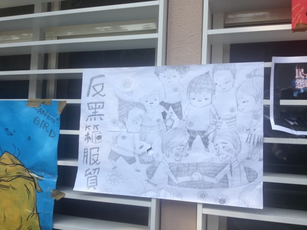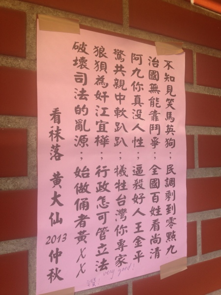 主要靜坐區路邊掛滿各式小文宣。若是對中文完全無法閱讀者,可能會不小心以為是文創展示。