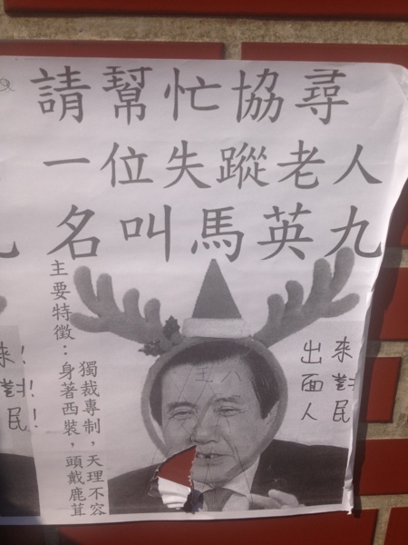 協尋老人的廣告,諷刺馬英九的迴避。