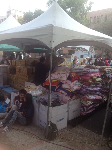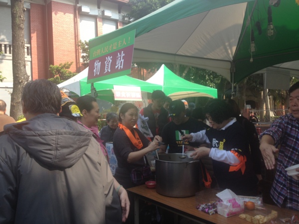 台獨專區的物資站,正煮著雞湯,有需要可排隊領取。