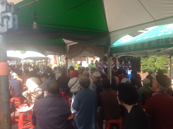 終於來到禮拜現場,民眾或做或站在帳棚區聽講。