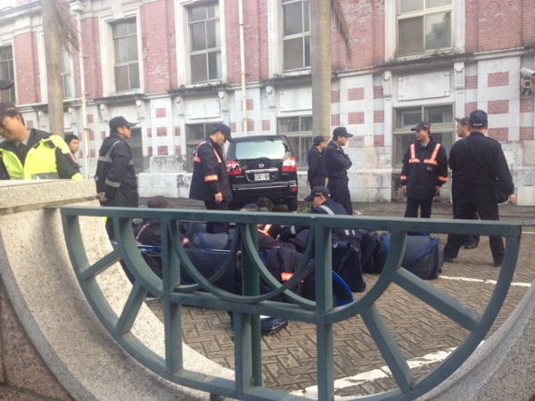 講者背後仍是一群警力。