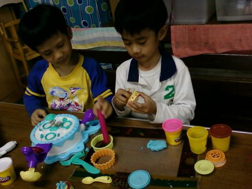 「不要太大力,要小心,做蛋糕多出來的部份要用小刀切掉…」