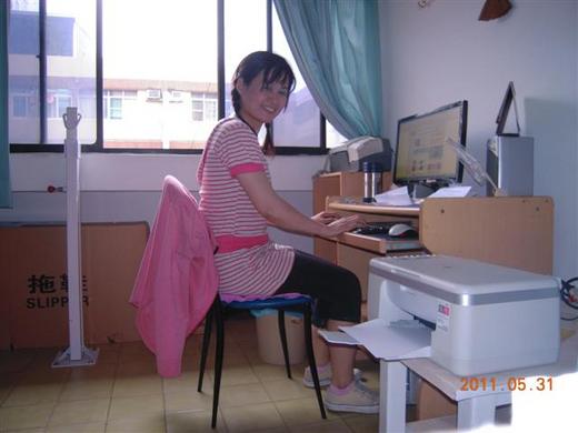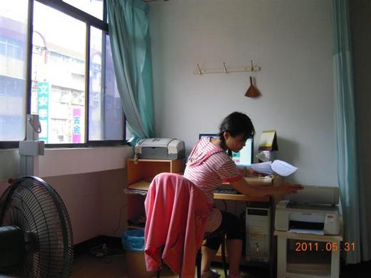 設備完善=傳真、電話、影印事務機、電扇…旁邊是按摩床(累了會躺五分鐘享受一下)