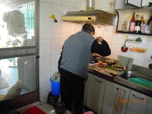 中午;義父親自下廚煮著一道一道我愛吃的菜,然後不停的勸導我。