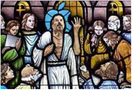 藝術家筆下的神化的賈伯斯與其門徒信眾