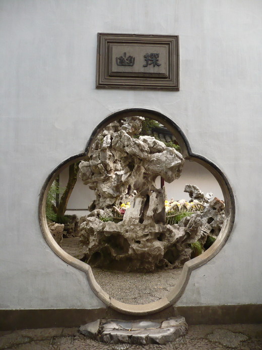 雖然時間已近黃昏,光線變得昏昏暗暗地,拍不出理想的影像,但是穿梭在太湖石林立、蜿蜒曲折的偌大園區裡,還是屢有柳暗花明又一村的驚喜.......