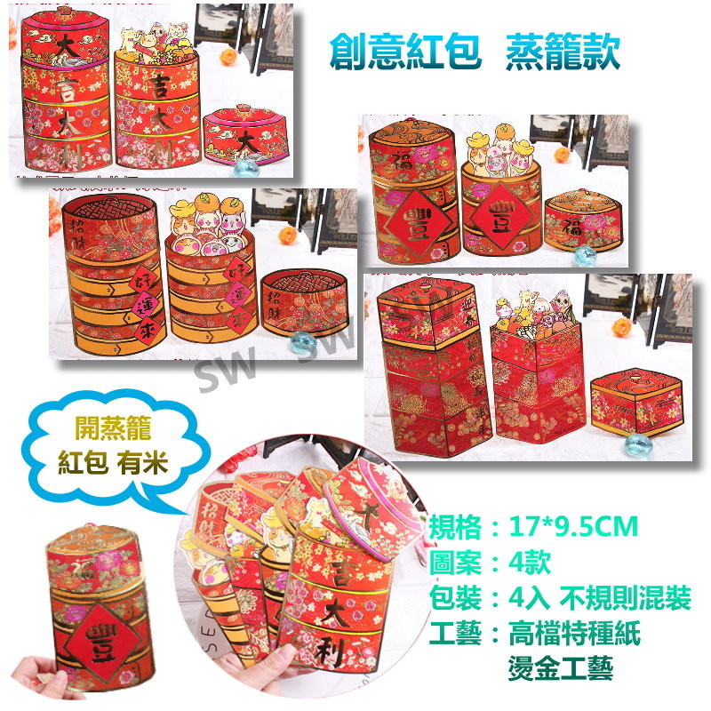 EG006 蒸籠造型 紅包袋 4入 創意紅包 狗年紅包袋 2018狗年紅包袋 卡通利是封 紅包封壓歲