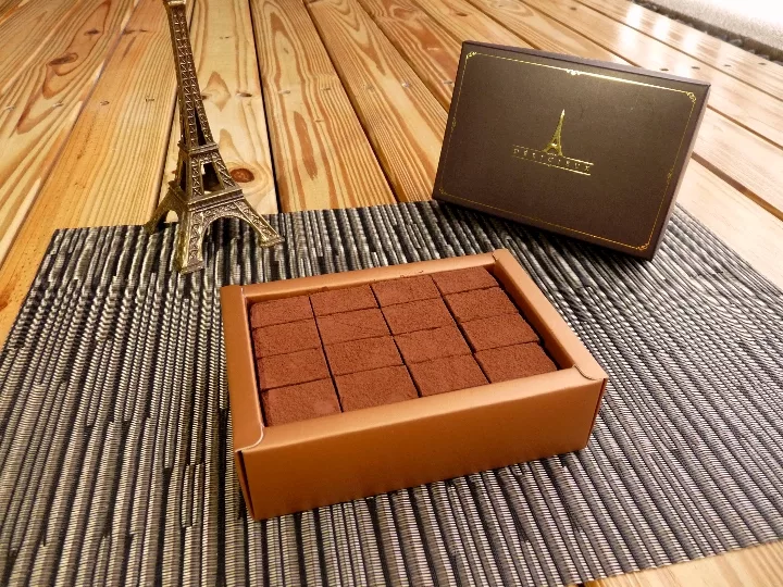 貝提公爵以法國進口70% Cacao Barry醇黑巧克力,搭上經歐盟AOP認證的法國諾曼地產區最頂級夢幻鮮奶油,以及遵循古法製作略帶酸氣的天然發酵奶油。純手工製作的生巧克力歷經48小時自然熟成,切成石磚狀後灑上帶苦味的可可粉,有如絲綢般的柔軟觸感,自然散發濃郁芳香,入口後微苦帶甜的美妙滋味緩緩在舌尖上化開,甜美的可可亞尾韻瀰漫在呼吸之中!