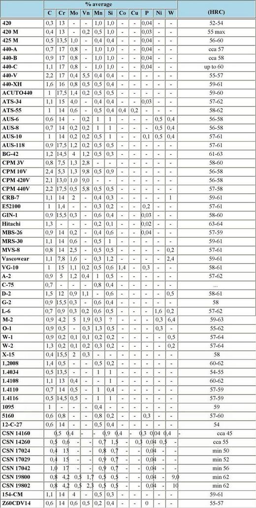 Heat treatment, blade geometry, handle geometry and materials all effect how a knife performs for a particular job. However, those other qualities can be difficult to measure. You can't tell by looking at it how well a blade has been heat-treated, and you can only make educated guesses on how well the blade and handle geometry willwork. With steel, however, you can get a full listing of its alloying elements, something measureable and somehow satisfying.
