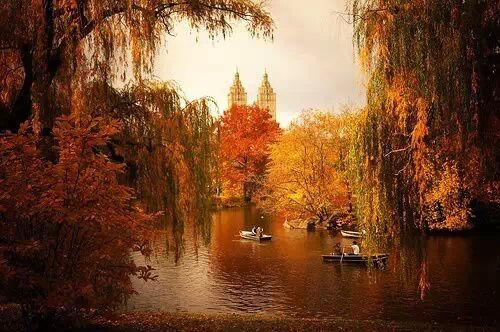 而这个时候,在纽约的中央公园,一片金黄,阳光温馨恬静,秋风和煦轻柔,应该是特别的美吧: