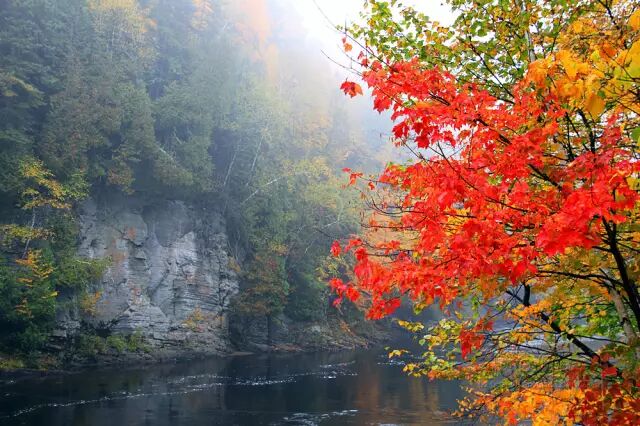 “枫叶大道”(Maple Road)绵亘安大略省和魁北克两省,由40、417和407号公路串连而成,全长800公里,沿途穿越峡谷、河流、山峦和湖泊无数。每到10月,绚烂得惊心动魄!