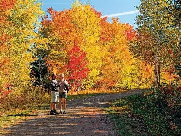 在加拿大东海岸的爱德华王子岛(Prince Edward Island),秋叶颜色也是相当丰富的。圣劳伦斯湾(Gulf of St. Lawrence)及诺森伯兰(Northumberland Strait)温暖的海水令当地秋季偏暖,赏叶季节也相对较长。