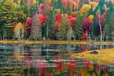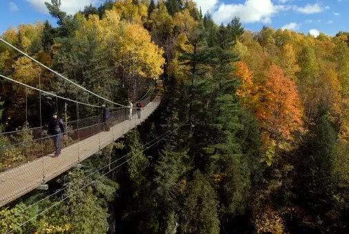 在安大略省,阿冈昆省立公园(Algonquin Provincial Park)是秋日露营和健行的好去处。湖畔森林里,醉人的秋色美不胜收。加之面积多达7725平方公里,又距离多伦多市区不远,使得阿岗昆公园成为安大略省最受欢迎的公园之一,这里最佳的游览方式是步行或划船。搭乘游船畅游在千岛群岛(Lake of 1,000 Islands)间的湖泊上,也是欣赏秋叶美景的一大热门线路。