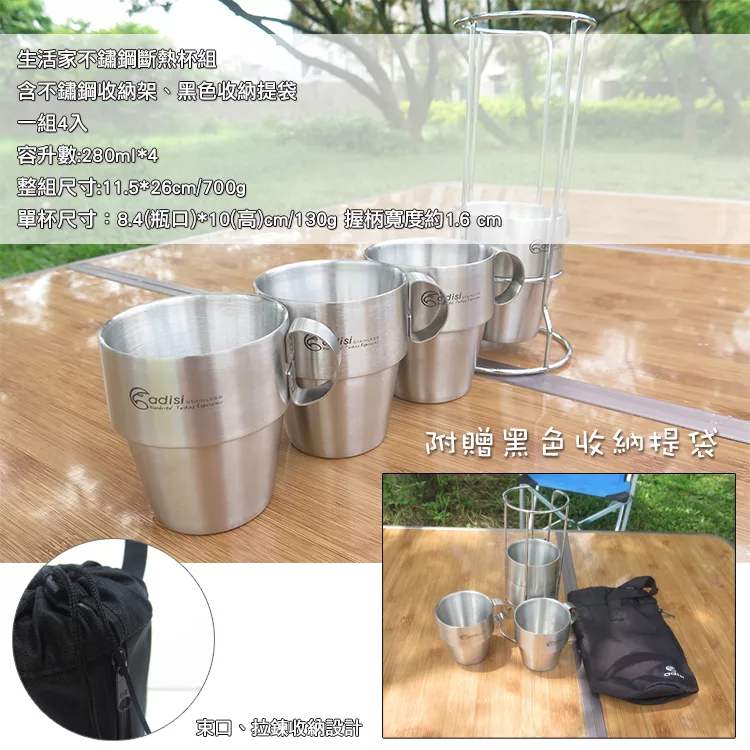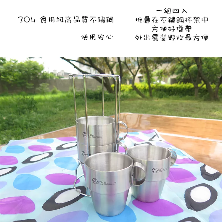 周末出門去!!ADISI 生活家雙層不銹鋼杯組AS10123-城市綠洲專賣 (登山露營、多人可用、一組四入、304不鏽鋼)