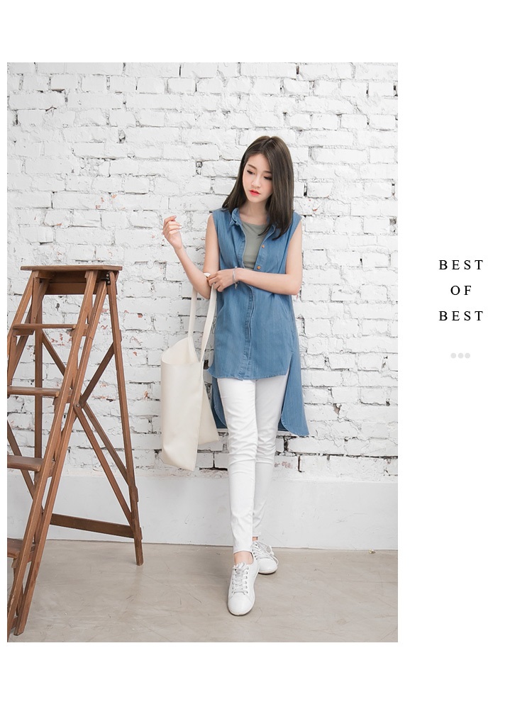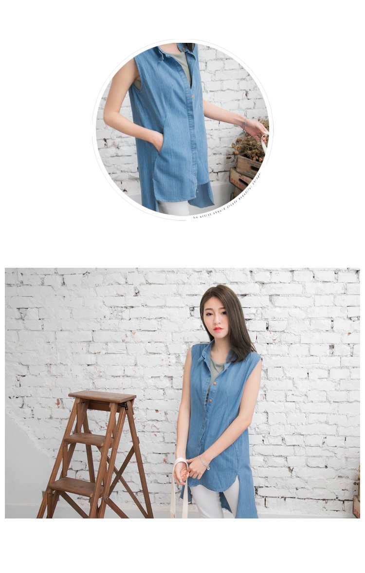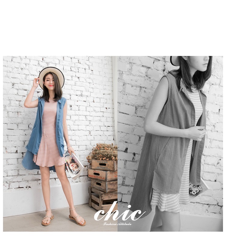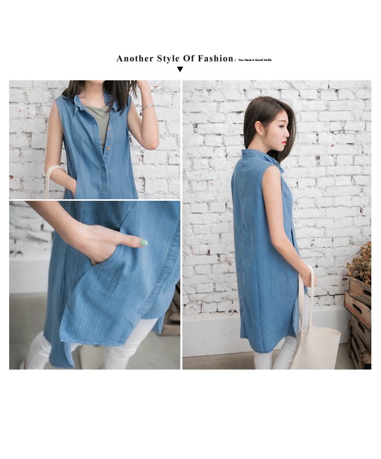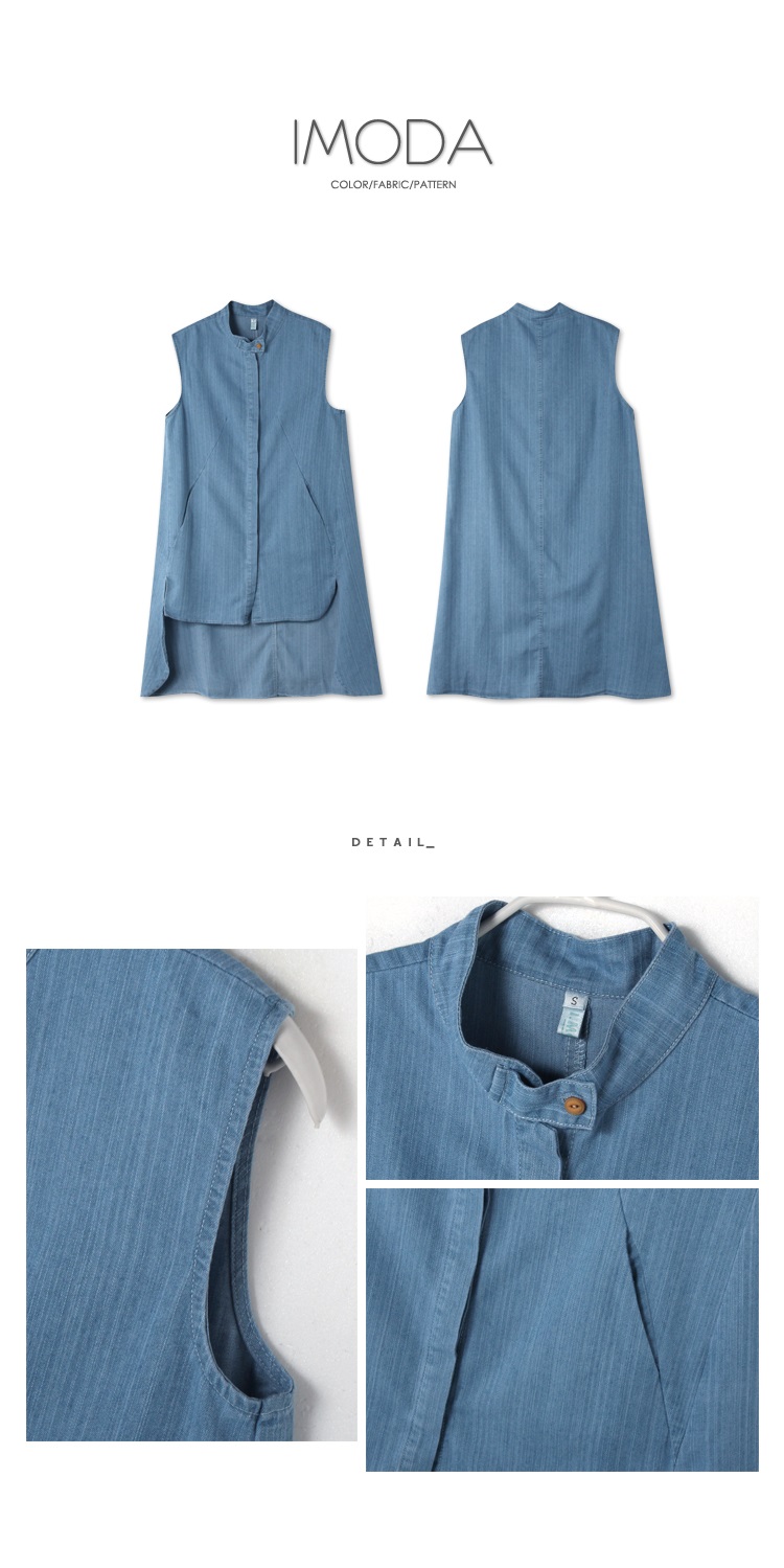 0613新品 質感牛仔前短後長無袖青年購屋貸款罩衫