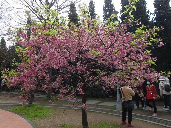 樂活公園櫻花種類:寒櫻、八重櫻、昭和櫻、吉野櫻.