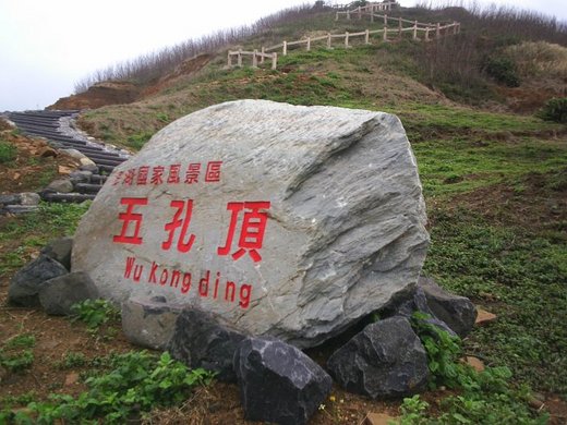 偕國彥遊五孔山,覓唱和題材。先是,途經後寮問路,有客言曰:到赤馬後,自有路標指引,不難尋覓也。逮至,竟尋覓不得。幸邂逅彼中年男子,熱心呼朋引伴。理事長來,充作全程嚮導。恰似訪鼎灣開帝殿遇方老,果是機緣也!如何未見指標?蓋奇比颱風肆虐,仆倒路側也。理事長曰:今年三月村民大會,開發五孔山成觀光新景點之議成,社區發展協會乃鳩工整理,無奈公家經費有限,惟自立自強,親率十餘環保義工,上五孔山,斫榛莽、造土階百四十餘,直上山頂,以利後之來者登臨攬勝,全體揮汗如雨,歷半月餘而有成績。而今一陣風狂雨暴,路標傾頹,雜草復生,我輩造訪,如入蠻荒,想:凡事破壞容易而建設不易也,吾人可不珍惜辛勤建設之成果耶?