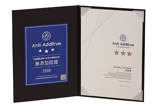 榮獲AA亞太區無添加協會,最高規格3星無添加認証