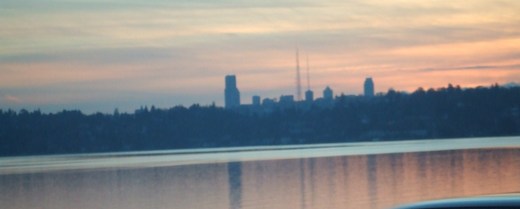 這天, 就從這邊的東端, 駛過520浮橋, 開往西端----西雅圖市中區的方向. 星期日下午兩點鐘, 湖水非常平靜, 迎向一個來來去去的溝通, 就像在這座橋上飛奔與交錯, 只是很多單純關係的赴約與存在. 是的, 這是兩處首肯的距離代號, 也是個平凡擁有的一天, 早已約定的行程--------