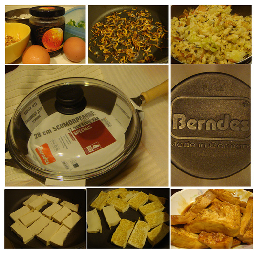 經過開鍋程序後,開鍋料理選定容易沾鍋的豆腐,想試鍋的喵喵不加油直接將豆腐下鍋,豆腐果然一點都不沾黏,好好翻面,也有恰恰的顏色喔!喜歡吃酥香外皮的豆腐,建議加點油,無關沾鍋與否,口感的問題罷了。