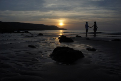 婚紗旅行最後傍晚海邊