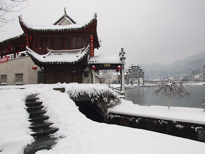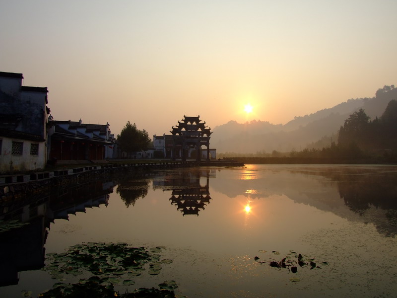 安徽出來姓胡的名人不少,胡雪巖、胡適、胡耀邦、胡錦濤,等等,看來安徽確實是個出產胡姓優秀人才的大本營。爸爸說他是西递人,那村裏的人全都姓胡。大陸尋奇的節目中曾經介紹西递,說這村的人是唐太宗李世民的後代,後來是為了避禍才遷到這裡來的, 所以也傳下來了「真李假胡」,「胡李不通婚」等祖訓。我借助了電腦網路之便,開始追本溯源,找到了兩種不同的說法,一說與大陸尋奇的介紹相同,李世民的後代為了避禍,南遷到此地改姓胡,另一說是宗譜上所寫「西川胡族,其先本姓李。唐昭宗李曄之幼子,因避朱溫之亂,由近侍郎胡三(名清)護帶至婺源考水,後改姓為胡,取名昌翼。」後來在北宋皇佑年間(公元1047年),五世孫胡士良由婺源去金陵(南京)途經西递,深深地被這裡的山形水勢所吸引,翌年就舉家遷到了西递居住,也從而開始了胡氏家族在西递千年的繁衍生息史。不管是哪一個說法,都證實了此村人是唐朝皇室後代因避禍最後改姓胡並落腳此處的說法。