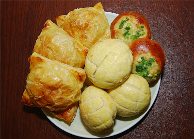 妹妹愛吃烏龜麵包(她口中的turtle包包,就是菠蘿包),老公喜歡起酥肉鬆(起酥皮在超市就買得到),外婆則欣賞蔥的香味,另外我還做過克林姆包和牛角麵包(是Vivian春假在家時我們合做的)。做法在周老師的網站上都有,我是用麵包機攪麺和發麵,非常方便,大家不妨試試。要注意的是,每個烤箱都不同,雖然食譜上有註明應該烤多久,但是我還是試了幾次才拿捏住火候,不至於烤得太黑或不夠。
